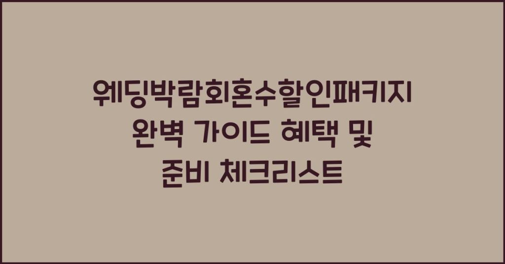 웨딩박람회혼수할인패키지에 대해 자세히 알아보고, 혜택과 준비 체크리스트를 통해 여러분의 결혼 준비를 더욱 스마트하게 해보세요! 웨딩박람회혼수할인패키지란? 웨딩박람회혼수할인패키지란, 신혼부부가 결혼을 준비할 때