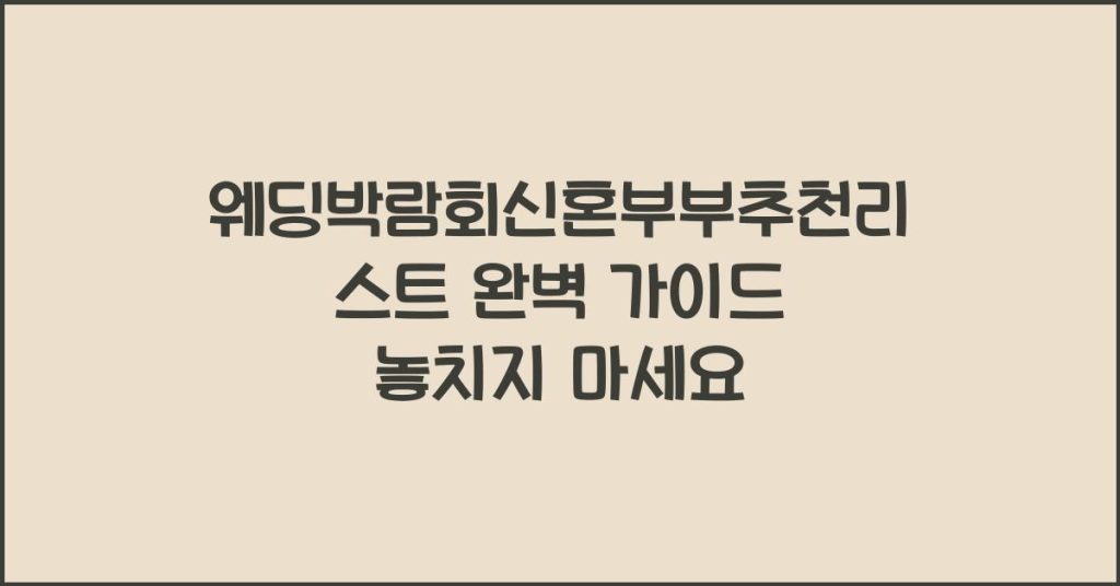결혼을 준비하는 신혼부부들을 위해 웨딩박람회에서 찾을 수 있는 필수 요소들로 구성된 추천리스트를 소개합니다. 성공적인 웨딩박람회 방문을 위해 놓치지 말아야 할