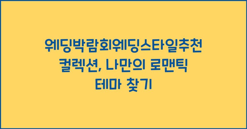 이번 웨딩박람회에서 로맨틱한 테마를 찾는 방법과 스타일 추천 컬렉션을 통해 나만의 특별한 웨딩을 만들어보세요! 웨딩박람회웨딩스타일추천컬렉션이란? 웨딩박람회웨딩스타일추천컬렉션은 예비 신부와 groom들이 자신만의