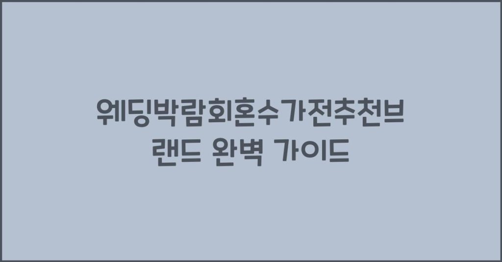 웨딩박람회에서 가장 추천하는 혼수가전 브랜드를 통해 신혼 생활의 시작을 아름답게 꾸미는 방법을 알아보세요! 선별된 브랜드들을 소개합니다. 웨딩박람회 혼수가전 추천 브랜드란?