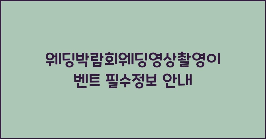 웨딩박람회와 웨딩영상촬영 이벤트의 모든 정보가 담겨 있습니다. 이 글을 통해 필요한 정보를 쉽게 확인하고, 꿈의 결혼식을 준비하세요! 웨딩박람회란 무엇인가요? 웨딩박람회는 […]