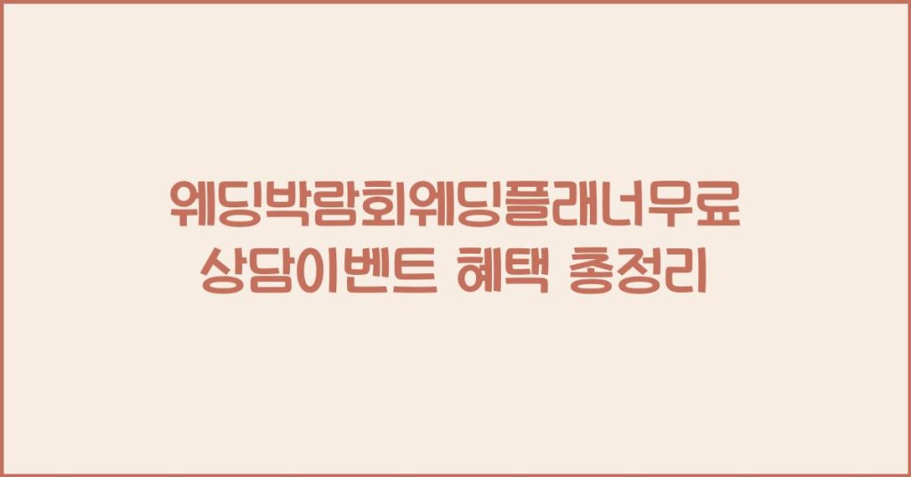 웨딩박람회와 웨딩플래너 무료 상담 이벤트의 다양한 혜택을 정리합니다. 결혼 준비를 하는 예비 부부들께 유용한 정보를 제공합니다. 웨딩박람회와 웨딩플래너 무료 상담
