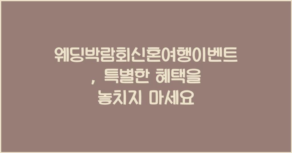 웨딩박람회 신혼여행 이벤트에서 제공하는 특별한 혜택을 소개하며, 미래의 신혼부부들에게 소중한 여행을 계획하는 데 도움이 될 정보를 제공합니다. 웨딩박람회 신혼여행 이벤트란?