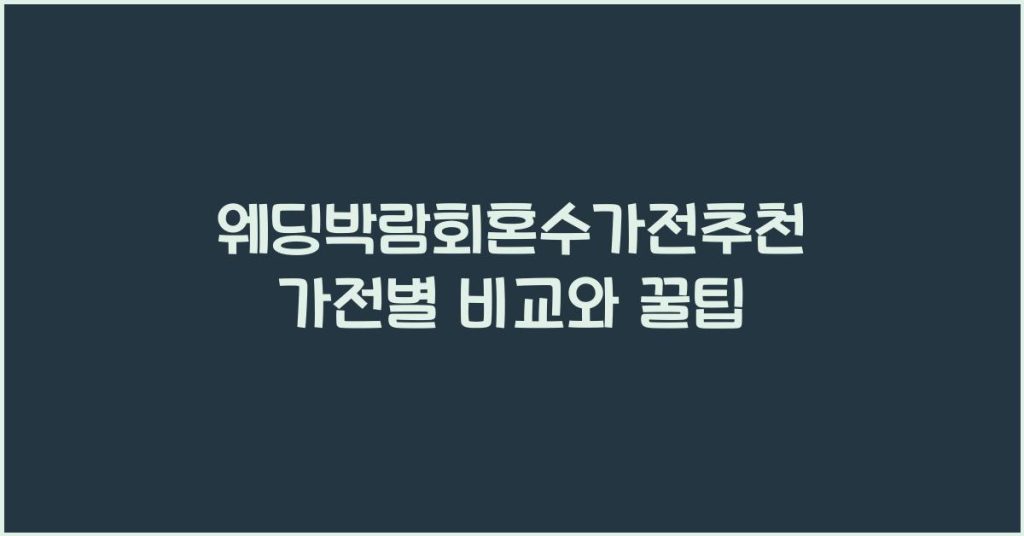 웨딩박람회에서 혼수가전 추천을 통해 가전제품을 비교하고, 현명한 구매 꿀팁을 제공합니다. 결혼 준비로 바쁜 예비부부에게 꼭 필요한 정보가 가득합니다. 웨딩박람회 혼수가전