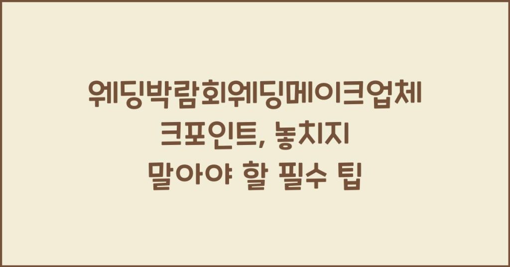 웨딩박람회에서 완벽한 웨딩메이크업을 찾기 위한 체크포인트를 알아보세요. 이 가이드는 메이크업 선택과 준비과정에서 유용한 정보를 제공합니다. 웨딩박람회웨딩메이크업체크포인트, 준비와 계획 웨딩박람회에 참석하기