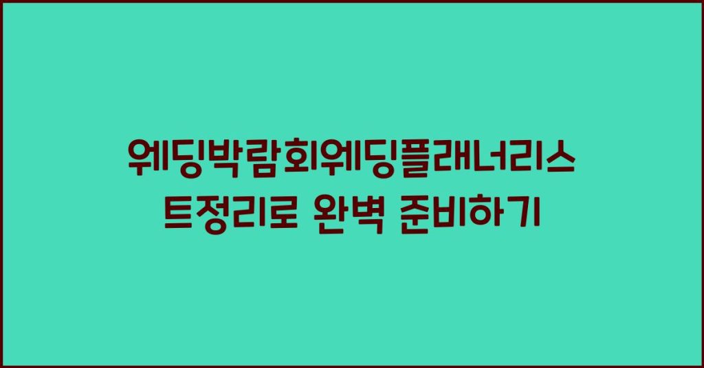웨딩박람회를 통해 결혼 준비는 물론 웨딩플래너 리스트를 정리하는 팁을 알아보세요. 간단하고 실용적인 정보들로 완벽한 결혼 준비를 도와드립니다! 웨딩박람회란 무엇인가? 웨딩박람회는