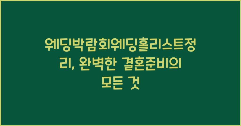 웨딩박람회웨딩홀리스트정리로 결혼 준비의 모든 과정을 쉽게 해결하세요! 결혼식 장소 선택부터 무엇을 준비해야 할지 고민을 덜어드리겠습니다. 웨딩박람회와 결혼 준비의 중요성 결혼식은