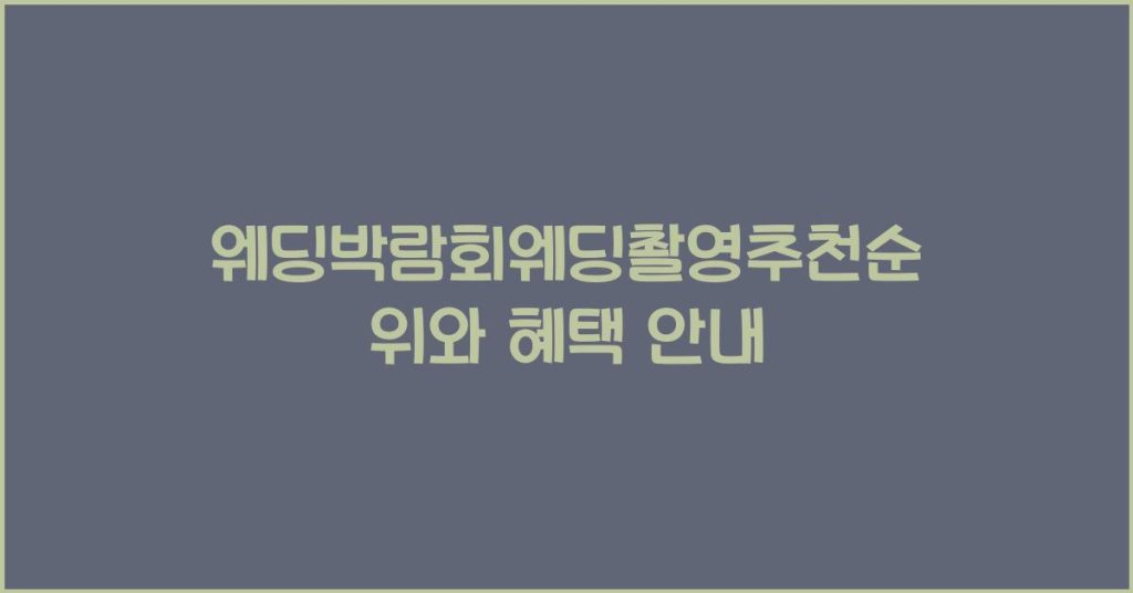 이 글에서는 웨딩박람회와 웨딩촬영 추천 순위, 그리고 그에 따른 다양한 혜택을 자세히 설명합니다. 예비 신혼부부들의 특별한 순간을 잊지 못할 기억으로