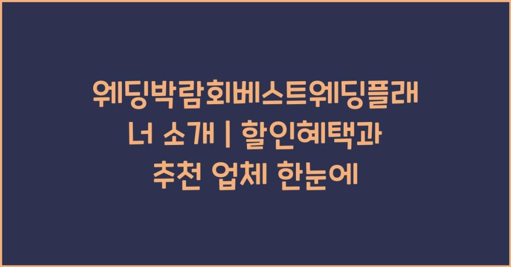생애 가장 특별한 날을 준비하는 예비 신랑신부들을 위해 웨딩박람회베스트웨딩플래너를 소개합니다. 다양한 할인 혜택과 함께 추천 업체를 통해 완벽한 결혼식을 꿈꿔보세요!
