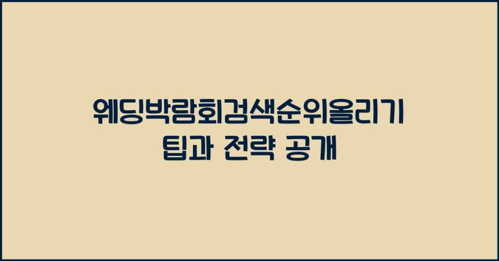 웨딩박람회 SEO 최적화 전략을 통해 결혼 준비를 위한 효과적인 정보 검색을 도와줍니다. 이 글은 쉽게 이해할 수 있는 SEO 최적화