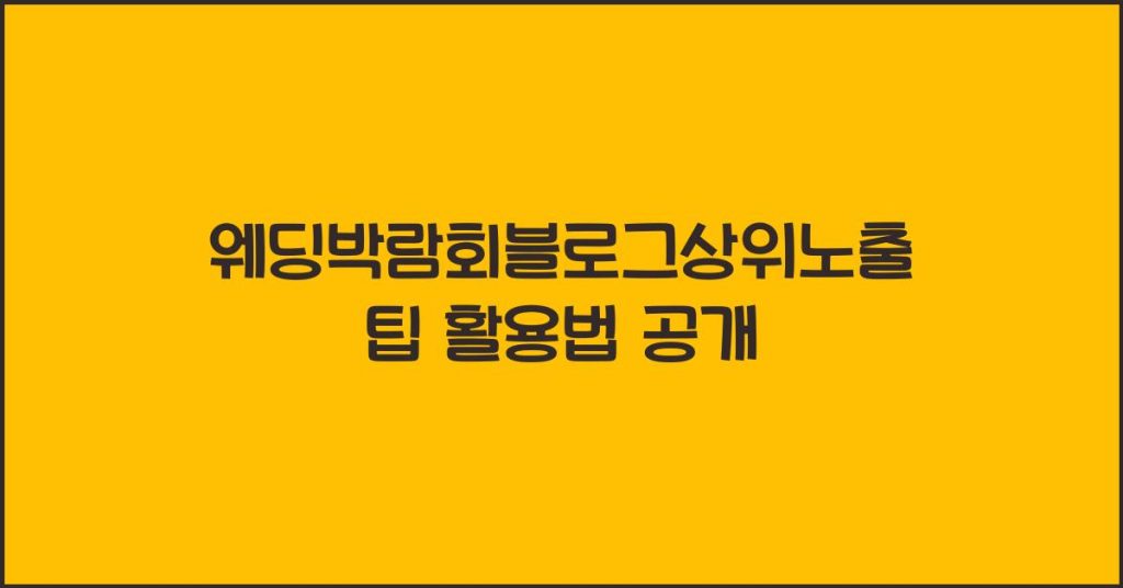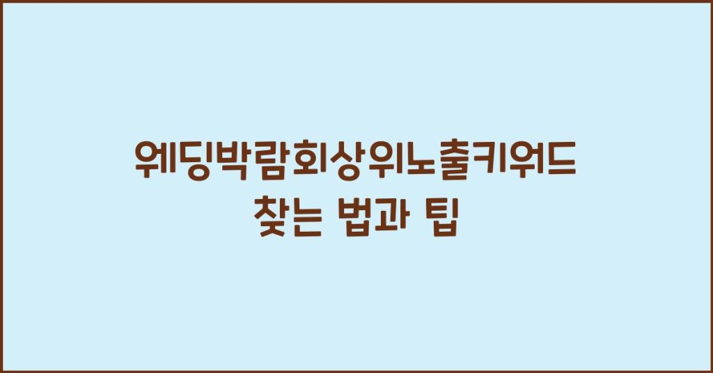 웨딩박람회상위노출키워드를 효과적으로 찾아내는 방법과 팁을 간단하게 소개합니다. 다양한 전략과 도구를 통해 많은 사람들에게 노출되는 방법을 알아보세요! 웨딩박람회상위노출키워드란? 웨딩박람회상위노출키워드는 결혼 관련