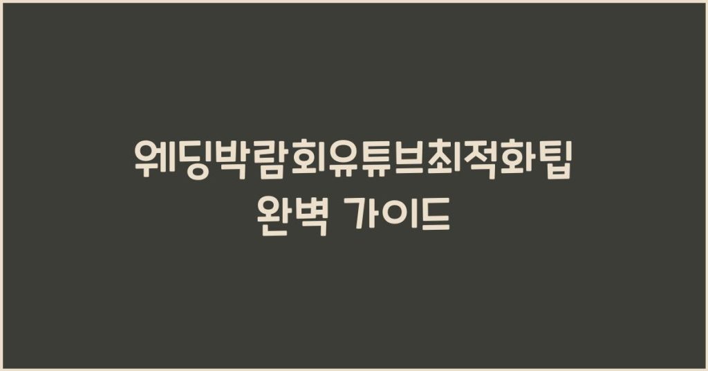 웨딩박람회 유튜브 최적화 팁을 통해 성공적인 채널 운영을 위한 전략을 알아보고, 매력적인 콘텐츠로 관람객을 사로잡는 방법을 소개합니다. 1. 웨딩박람회 유튜브