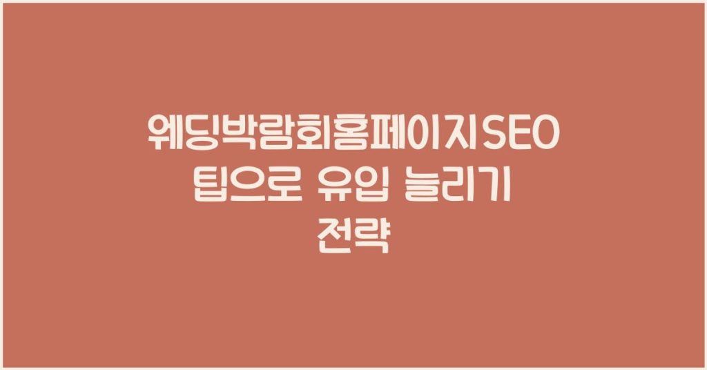 웨딩박람회홈페이지SEO팁은 웹사이트 방문자 수를 높이는 데 필수적이다. 이 글에서는 효과적인 전략과 기법들을 소개하여 네트워크를 확장할 수 있는 방법을 알아보자! 웨딩박람회홈페이지SEO팁의