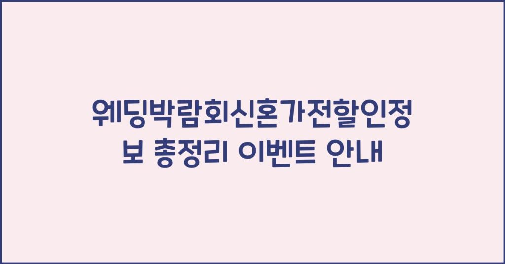 웨딩박람회 신혼가전 할인 정보를 총정리한 이 이벤트는 예비 부부들에게 큰 도움이 될 것입니다. 다양한 할인혜택과 정보를 놓치지 마세요! 웨딩박람회 신혼가전