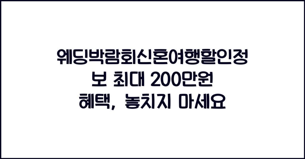 웨딩박람회에서 제공하는 신혼여행 할인정보로 최대 200만원의 혜택을 누릴 수 있는 기회를 소개합니다. 올가을 꼭 방문해 보세요! 웨딩박람회신혼여행할인정보란? 웨딩박람회신혼여행할인정보는 결혼을 앞둔