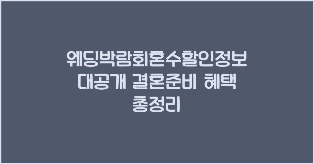 웨딩박람회예단할인정보를 통해 예비 신랑신부가 결혼 준비를 더욱 스마트하게 할 수 있는 방법을 알아봅니다. 할인 정보와 꿀팁을 상세히 소개합니다. 웨딩박람회란? 웨딩박람회는