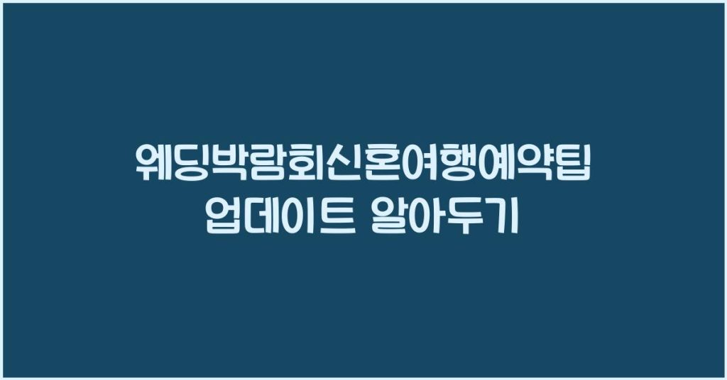 웨딩박람회 신혼여행 예약 팁 업데이트를 통해 신혼여행 준비를 완벽하게 하고, 다가오는 특별한 날에 더욱 특별한 순간을 만들어 보세요! 웨딩박람회란 무엇인가?