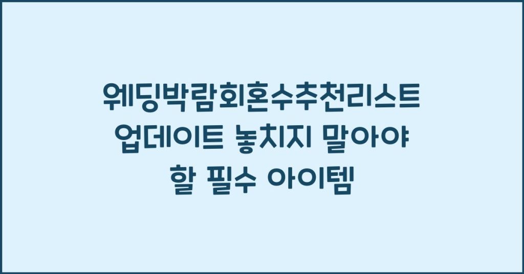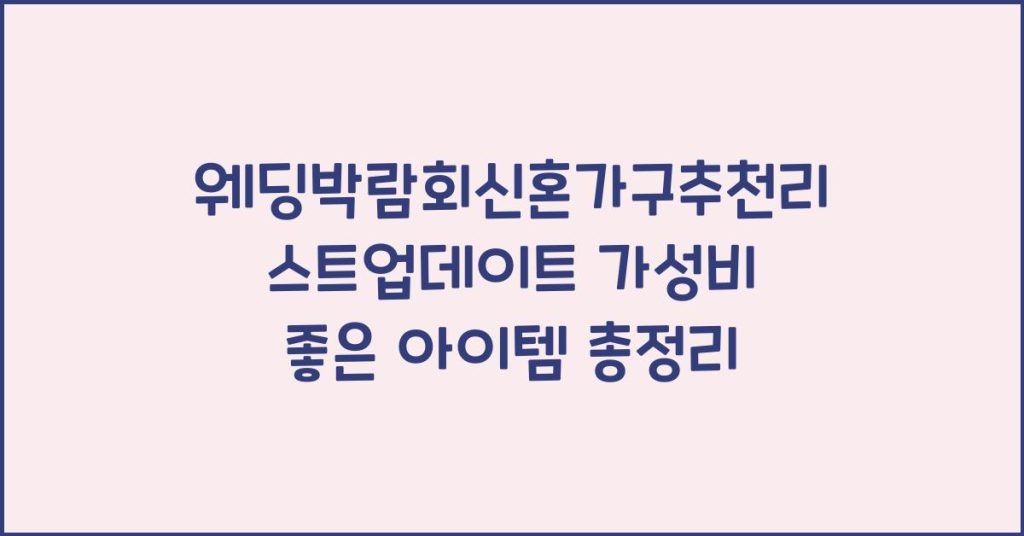 웨딩박람회에서 혼수 아이템을 선택할 때, 필수 아이템 리스트를 알고 가면 후회 없는 선택을 할 수 있습니다. 이 포스트에서는 혼수 필수