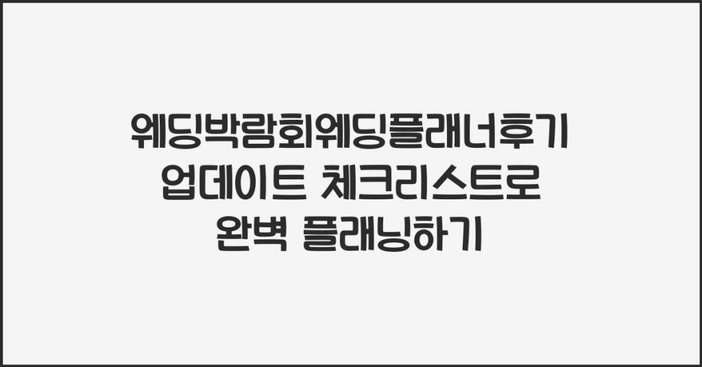 웨딩박람회웨딩플래너후기업데이트 체크리스트를 통해 꿈의 결혼식 준비를 완벽하게 하세요. 이 글에서는 실질적인 계획 과정과 필수 팁을 소개합니다. 웨딩박람회웨딩플래너후기업데이트의 중요성 결혼 준비는