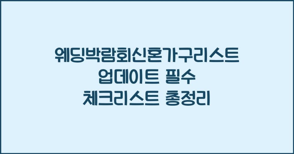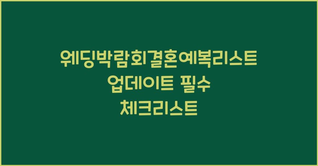 결혼을 준비하는 과정에서 필요한 정보와 자료를 한곳에서 확인하세요! 웨딩박람회결혼예복리스트업데이트에 대해 알아보고, 준비물 체크리스트로 당황하지 않고 완벽한 결혼 준비를 해보세요. 웨딩박람회결혼예복리스트업데이트의