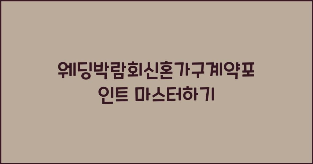 신혼부부를 위해 준비된 웨딩박람회의 신혼가구 계약 포인트를 마스터하는 방법을 소개합니다. 신혼 가구 계약 시 고려해야 할 사항과 전략을 상세히 알아보세요!