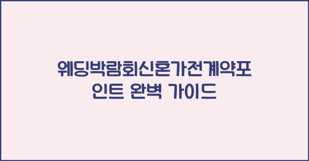 웨딩박람회에서 신혼가전 계약 포인트를 마스터하여 더욱 스마트한 결혼 준비를 하는 방법을 소개합니다. 실용적이고 흥미로운 정보가 가득합니다. 웨딩박람회 신혼가전 계약 포인트란?