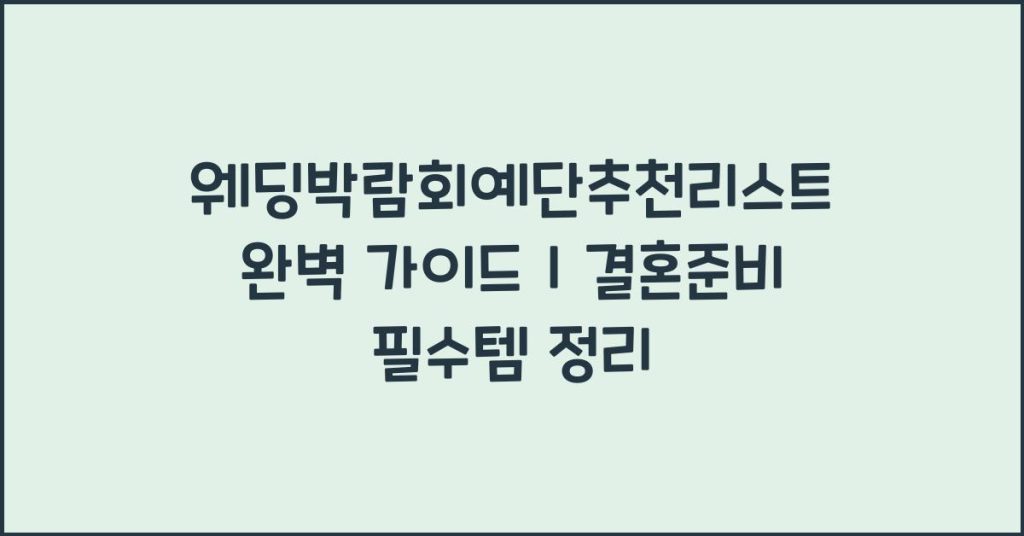 결혼 준비는 설렘과 함께 불안이 뒤섞인 여정입니다. 웨딩박람회와 예물추천리스트를 통해 결혼 준비를 더욱 완벽하게 해보세요! 웨딩박람회란 무엇인가? 웨딩박람회는 결혼을 앞둔