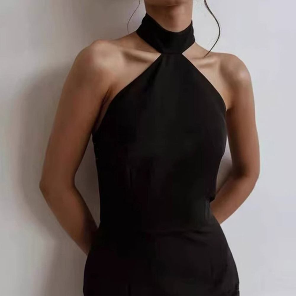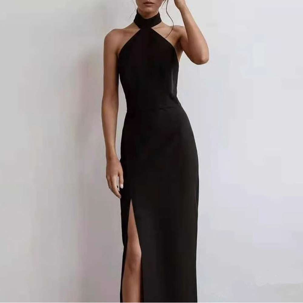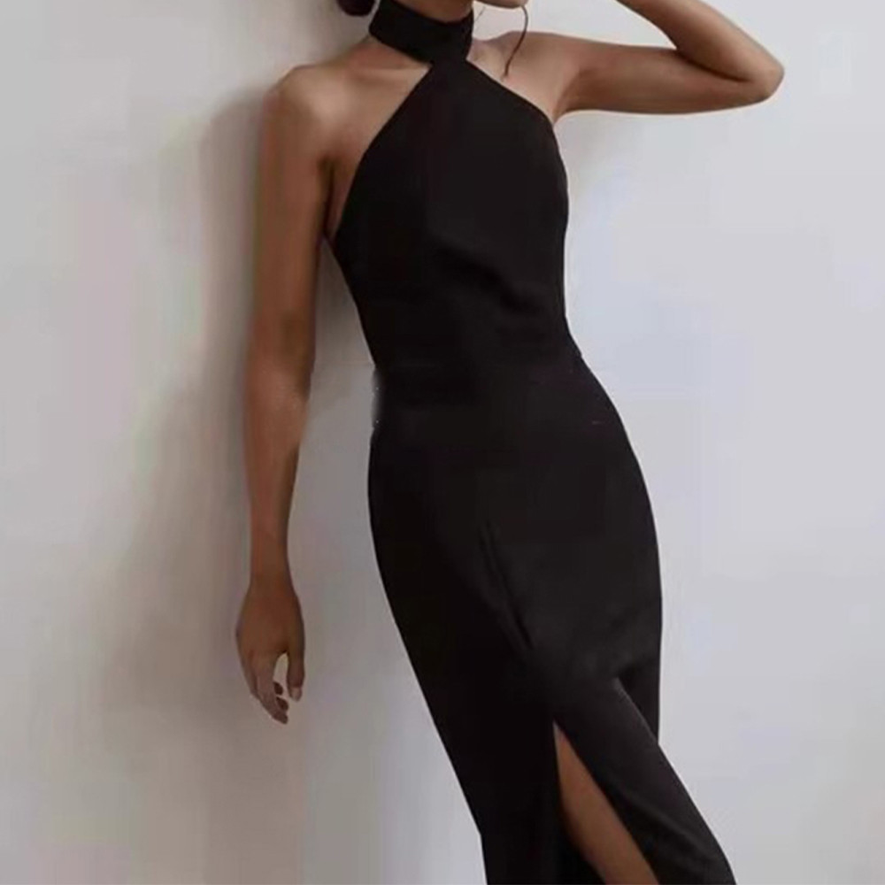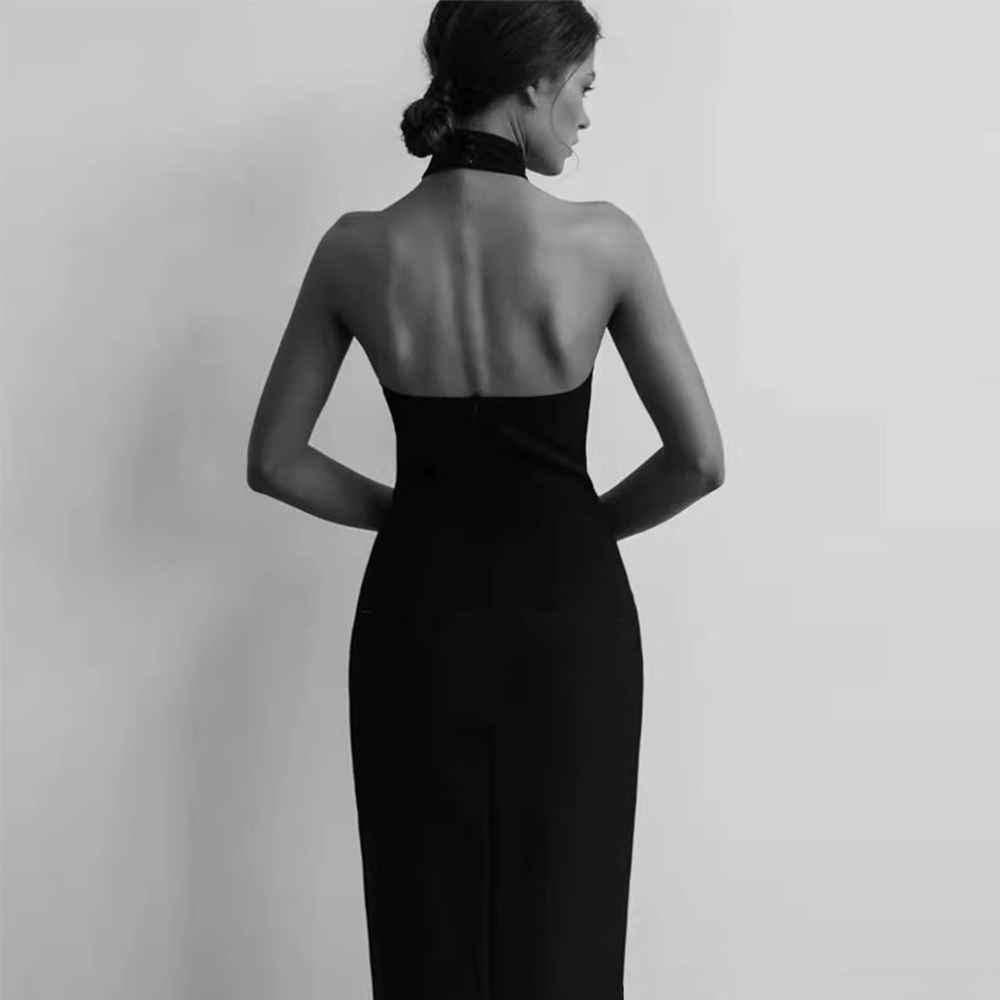 H라인 홀터넥 캐주얼 머메이드 블랙 트임드레스의 특징