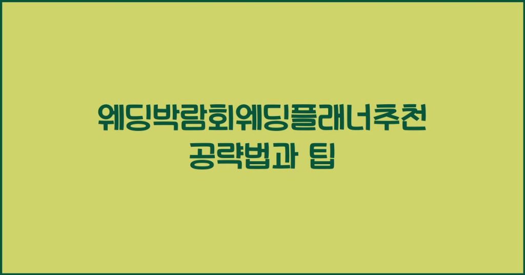 웨딩박람회에서 최고의 웨딩플래너를 찾는 방법과 노하우를 알아보세요. 이 글에서는 다양한 팁과 정보로 가득 차 있습니다. 웨딩박람회란 무엇인가? 웨딩박람회는 예비 신랑신부에게