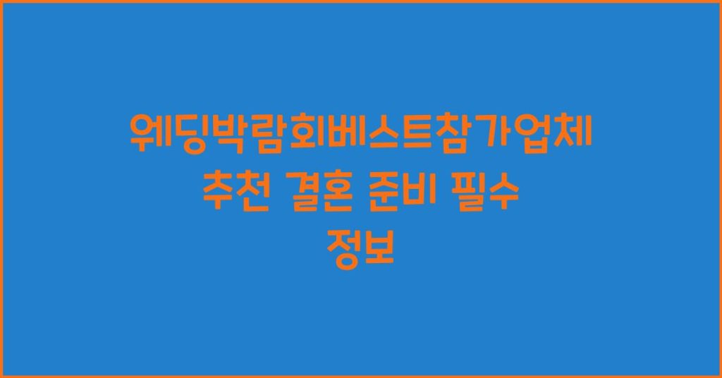 결혼을 준비하는 예비 신랑신부를 위해 웨딩박람회베스트참가업체를 소개하고, 이와 관련된 유용한 정보들을 제공해드립니다. 최고의 결혼식을 위한 준비를 함께해요! 웨딩박람회베스트참가업체란? 웨딩박람회베스트참가업체는 결혼을