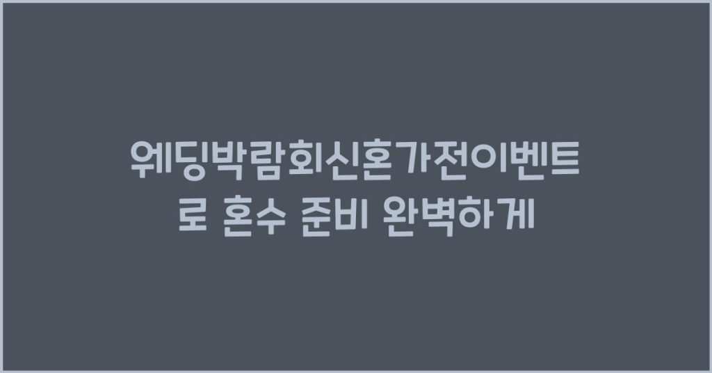 혼인을 준비하는 과정은 설레면서도 복잡합니다. 웨딩박람회신혼가전이벤트를 통해 혼수 준비를 완벽하게 할 수 있는 방법을 소개합니다. 웨딩박람회신혼가전이벤트란 무엇인가? 웨딩박람회신혼가전이벤트는 결혼을 준비하는