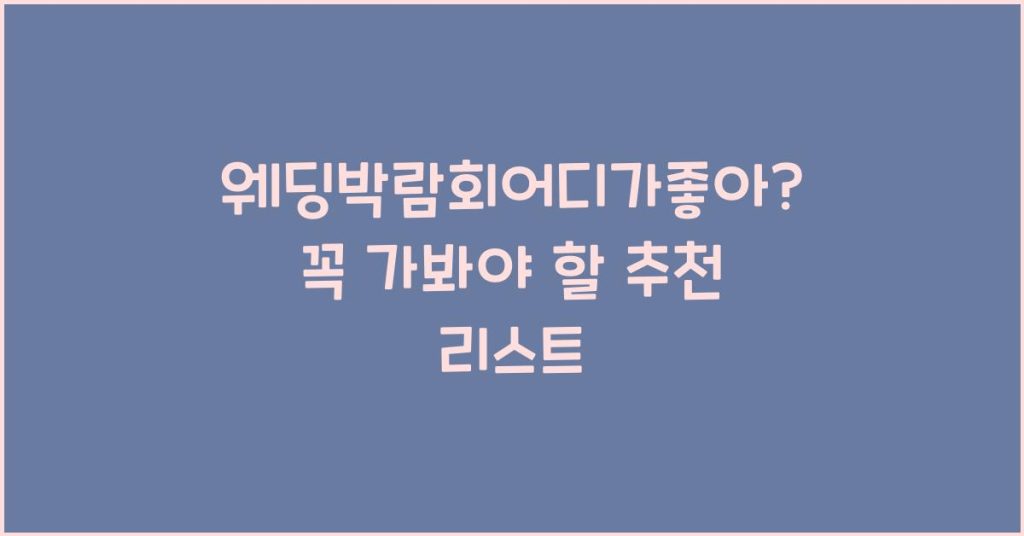 웨딩박람회어디가좋아에 대해 고민 중이신가요? 이 글에서는 추천할 만한 웨딩박람회를 소개하고, 원하는 정보를 쉽게 찾을 수 있도록 도와드립니다. 웨딩박람회어디가좋아? 첫 번째