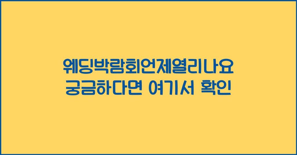 웨딩박람회언제열리나요에 대한 정보를 쏙쏙 뽑아드립니다. 다양한 행사 일정, 리소스 및 유용한 팁을 함께 알아보세요! 웨딩박람회란 무엇인가요? 웨딩박람회는 예비 부부와 결혼을