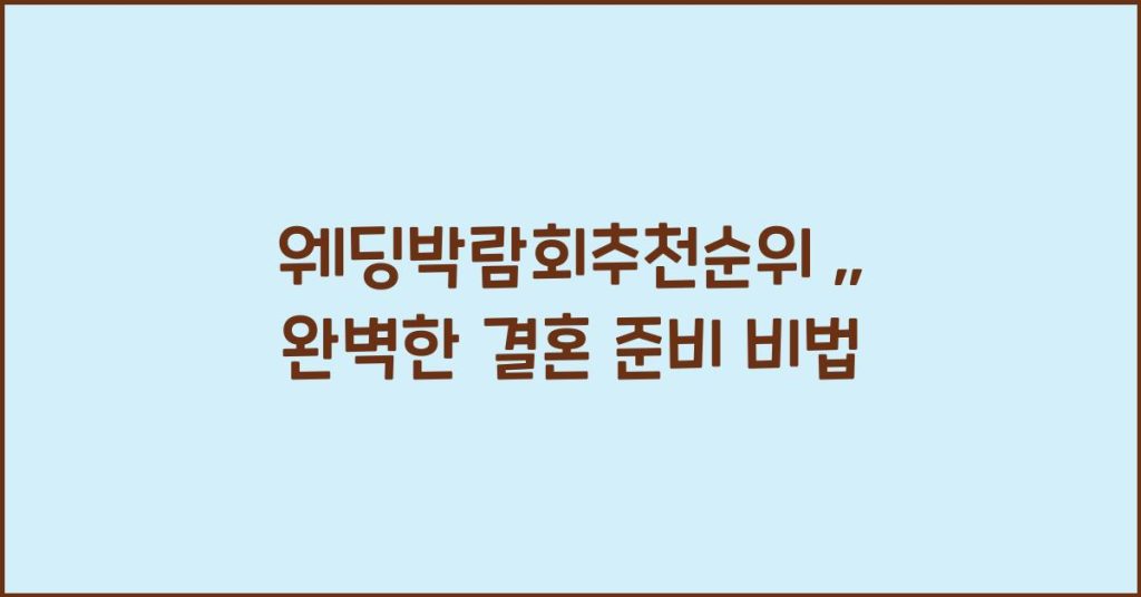 웨딩박람회추천순위를 통해 결혼 준비의 모든 것을 한눈에 알아보세요. 이 글에서 박람회의 혜택, 준비 팁, 그리고 추천 순위를 소개하며, 여러분의 특별한