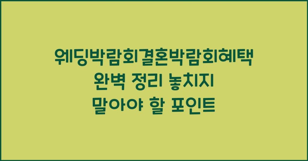 웨딩박람회 결혼박람회 혜택을 통해 결혼 준비에 필요한 다양한 정보와 할인 혜택을 얻을 수 있습니다. 이 글에서는 꼭 알아야 할 팁과