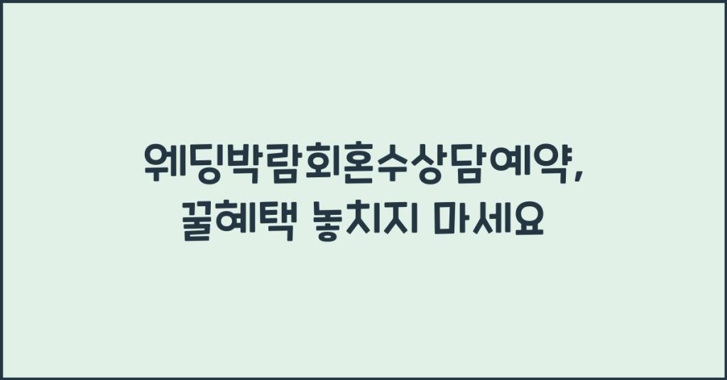 웨딩박람회 혼수 상담 예약의 중요성과 꿀혜택을 알아보세요. 이 글에서는 웨딩박람회의 활용법과 혜택 받는 방법을 자세히 설명할게요. 웨딩박람회란 무엇인가요? 웨딩박람회는 예비부부들이