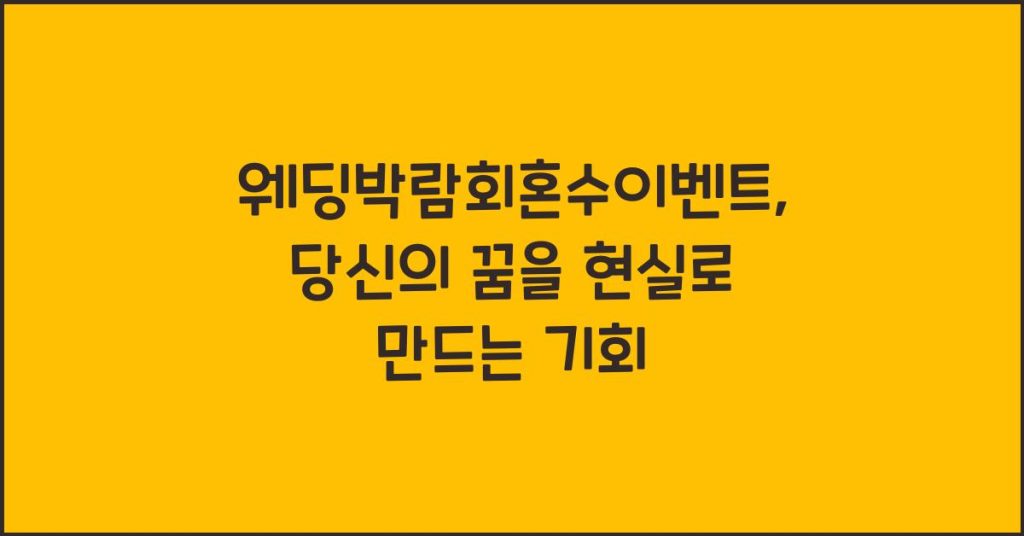 웨딩박람회혼수이벤트는 결혼 준비의 시작점으로, 특별한 날을 더욱 완벽하게 만들어줄 다양한 기회를 제공합니다. 이번 포스트에서는 웨딩박람회 혼수 이벤트의 매력과 참여 팁을