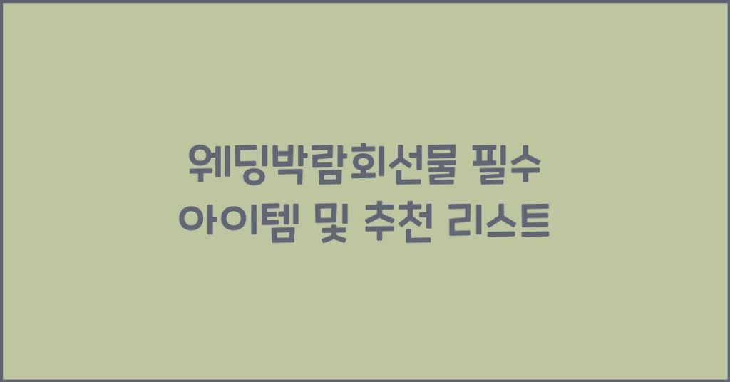 웨딩박람회선물은 결혼식을 준비하는 모든 예비부부에게 필요한 필수 아이템과 추천 리스트를 제공합니다. 실용적이고 기억에 남는 선물로 결혼 준비를 더욱 특별하게 만들어