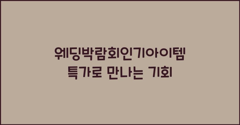 웨딩박람회에서는 특별한 순간을 위한 최고의 아이템들을 특가로 만나볼 수 있습니다. 이번 기회를 놓치지 마시고 웨딩박람회 인기아이템을 통해 꿈에 그리던 결혼식을