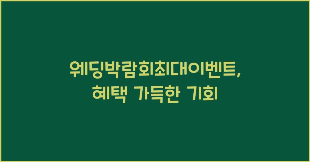 2023년 웨딩박람회최대이벤트는 결혼 준비하는 분들을 위한 최고의 기회입니다. 다양한 혜택과 정보가 가득한 이 박람회에 참여해 보세요! 웨딩박람회최대이벤트란 무엇인가? 웨딩박람회최대이벤트는 결혼을