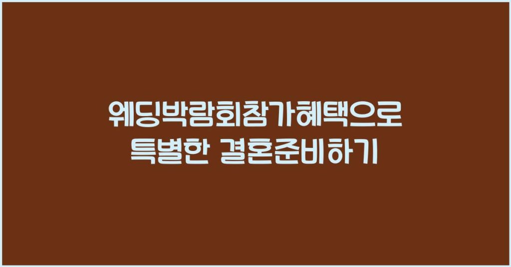 웨딩박람회참가혜택은 예비 신랑신부께 결혼 준비를 훨씬 특별하게 만들어줍니다. 다양한 정보를 얻고, 특별한 혜택을 최대한 활용하여 완벽한 결혼식을 준비하세요! 웨딩박람회란 무엇인가요?