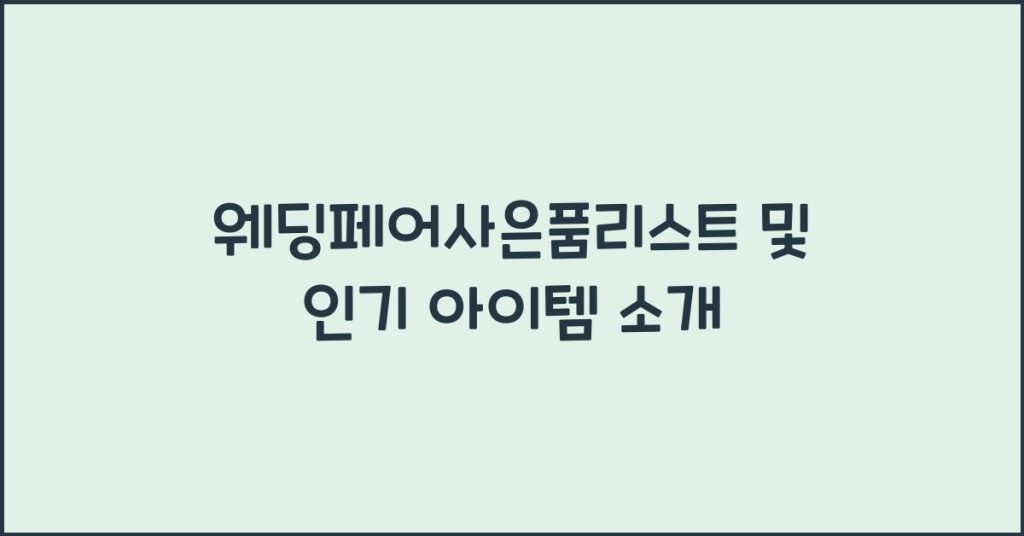 웨딩페어사은품리스트에 대한 깊이 있는 탐구와 인기 아이템을 소개합니다. 준비 과정이 모두에게 특별한 의미가 있는 만큼, 실용적인 정보와 감성적인 이야기로 가득
